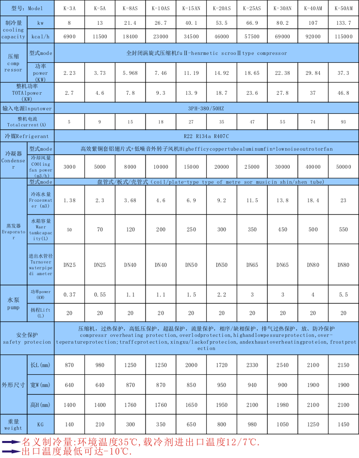8.水冷及風冷式規(guī)格齊全(功率:3HP-300HP,制冷量從600W至34800W)專門設(shè)有適合各行業(yè)機械設(shè)備配套之機型,可按客戶要求特別制造。