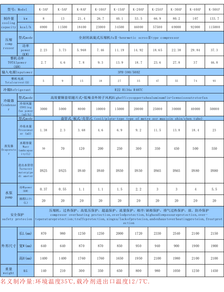 8.水冷及風(fēng)冷式規(guī)格齊全(功率:3HP-300HP,制冷量從600W至34800W)專門設(shè)有適合各行業(yè)機械設(shè)備配套之機型,可按客戶要求特別制造。