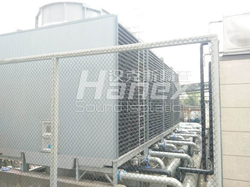 2.冷卻塔四周設(shè)置隔音屏障(底部鏤空、頂端與冷卻塔吸隔聲板封堵);