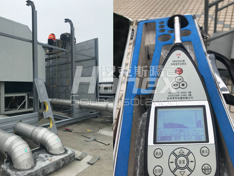(2) 針對(duì)4臺(tái)風(fēng)冷熱泵機(jī)組壓縮機(jī)噪聲大,對(duì)風(fēng)冷熱泵機(jī)組壓縮機(jī)部件加裝隔聲罩。